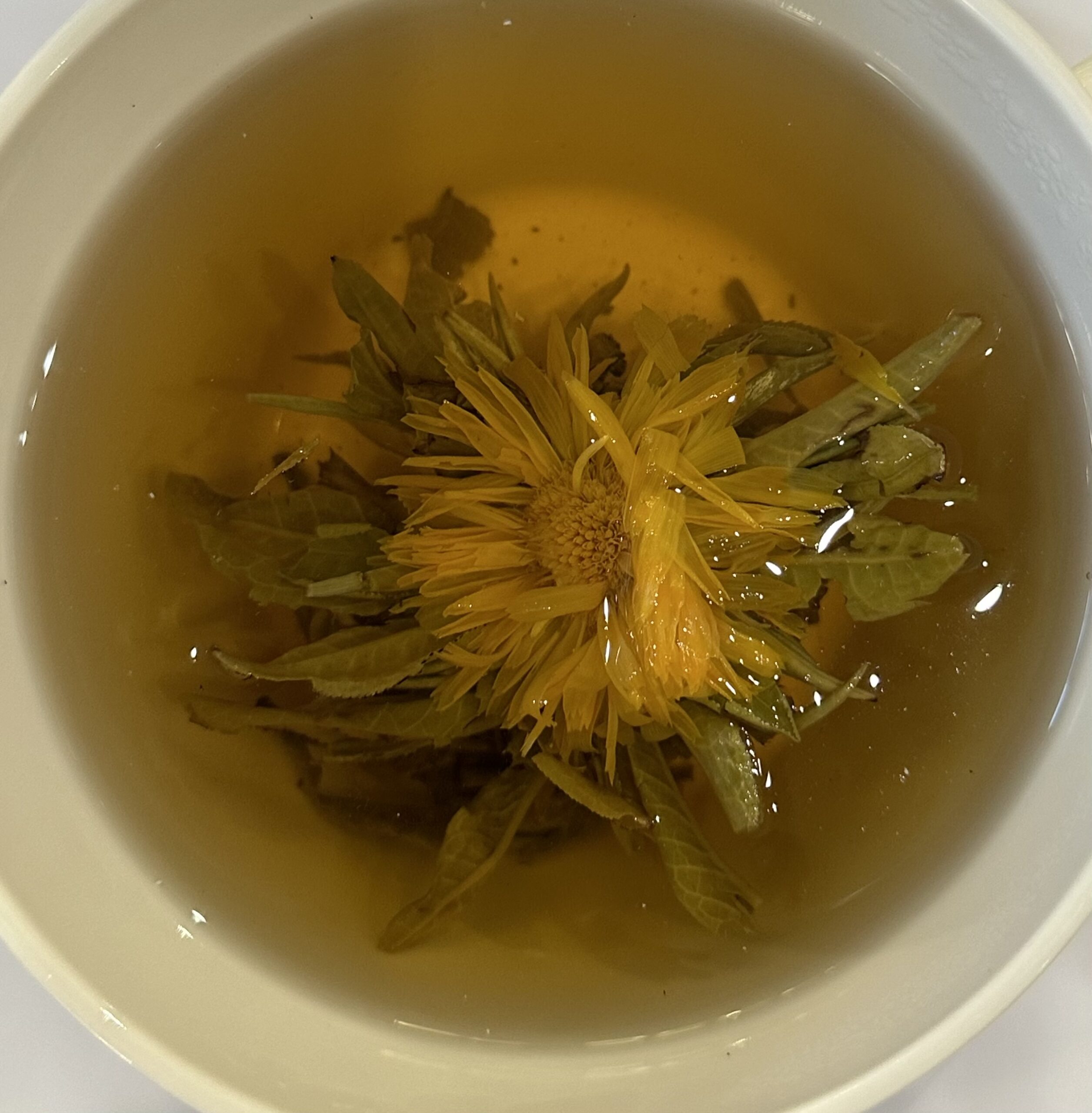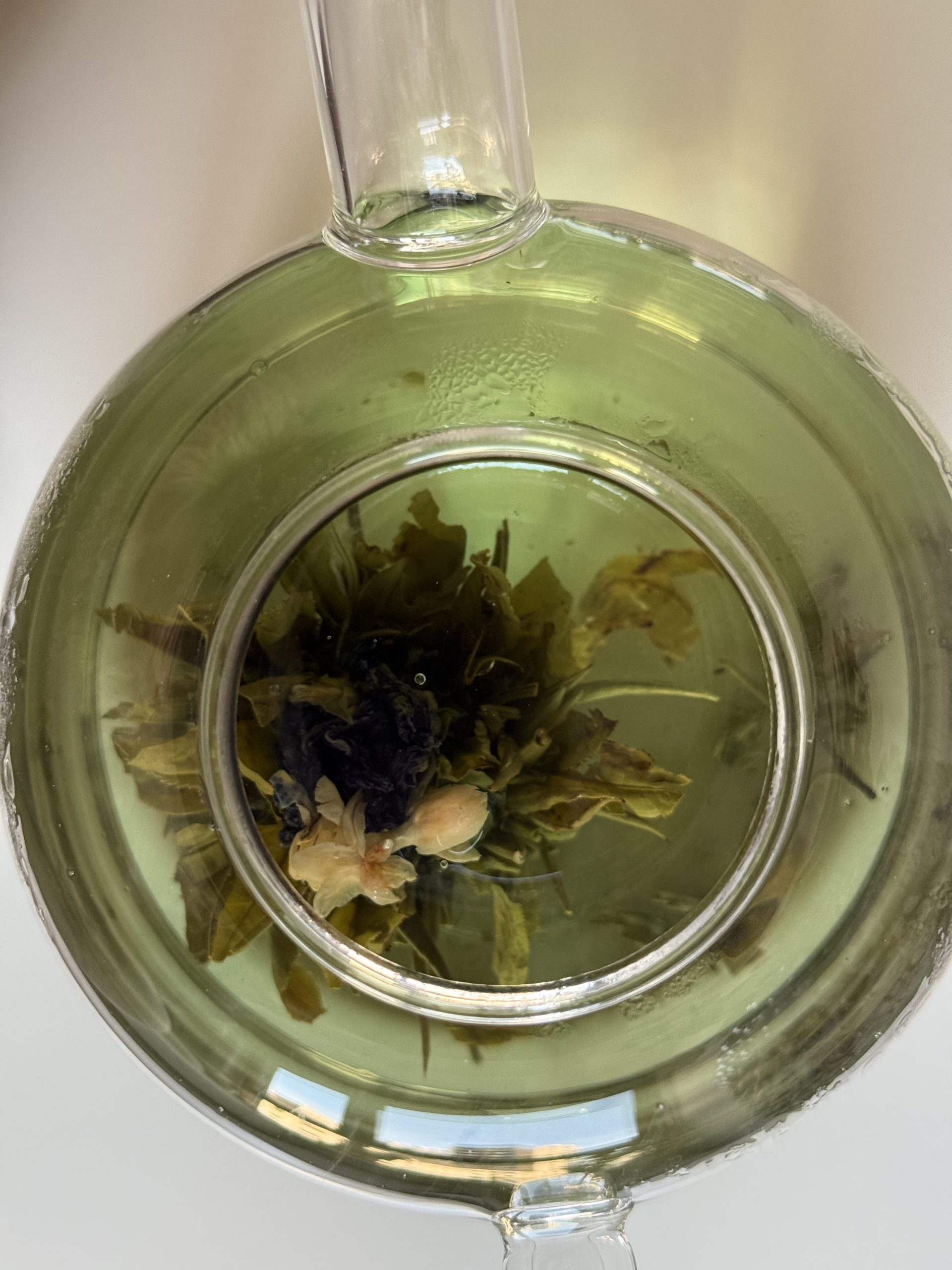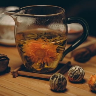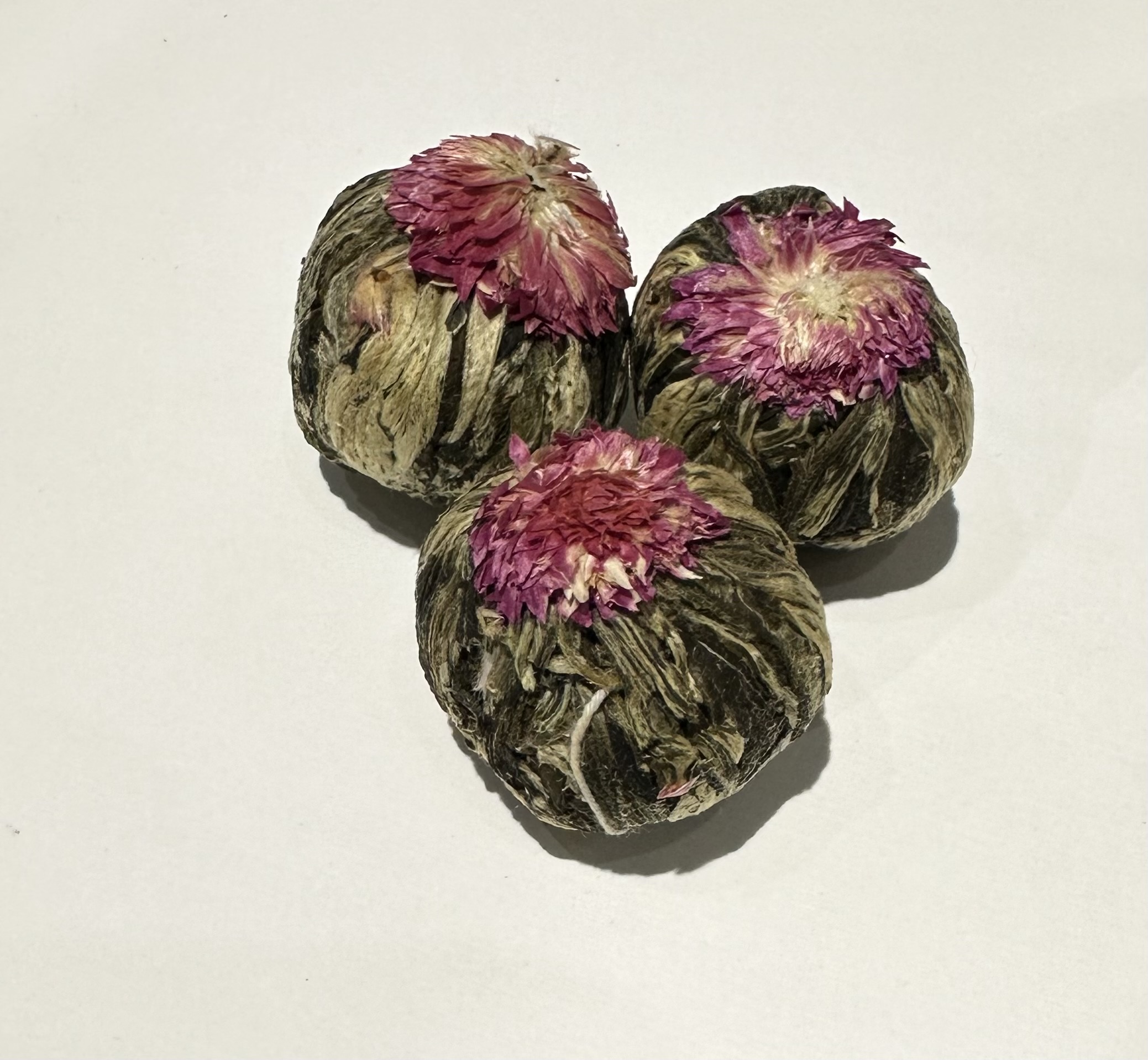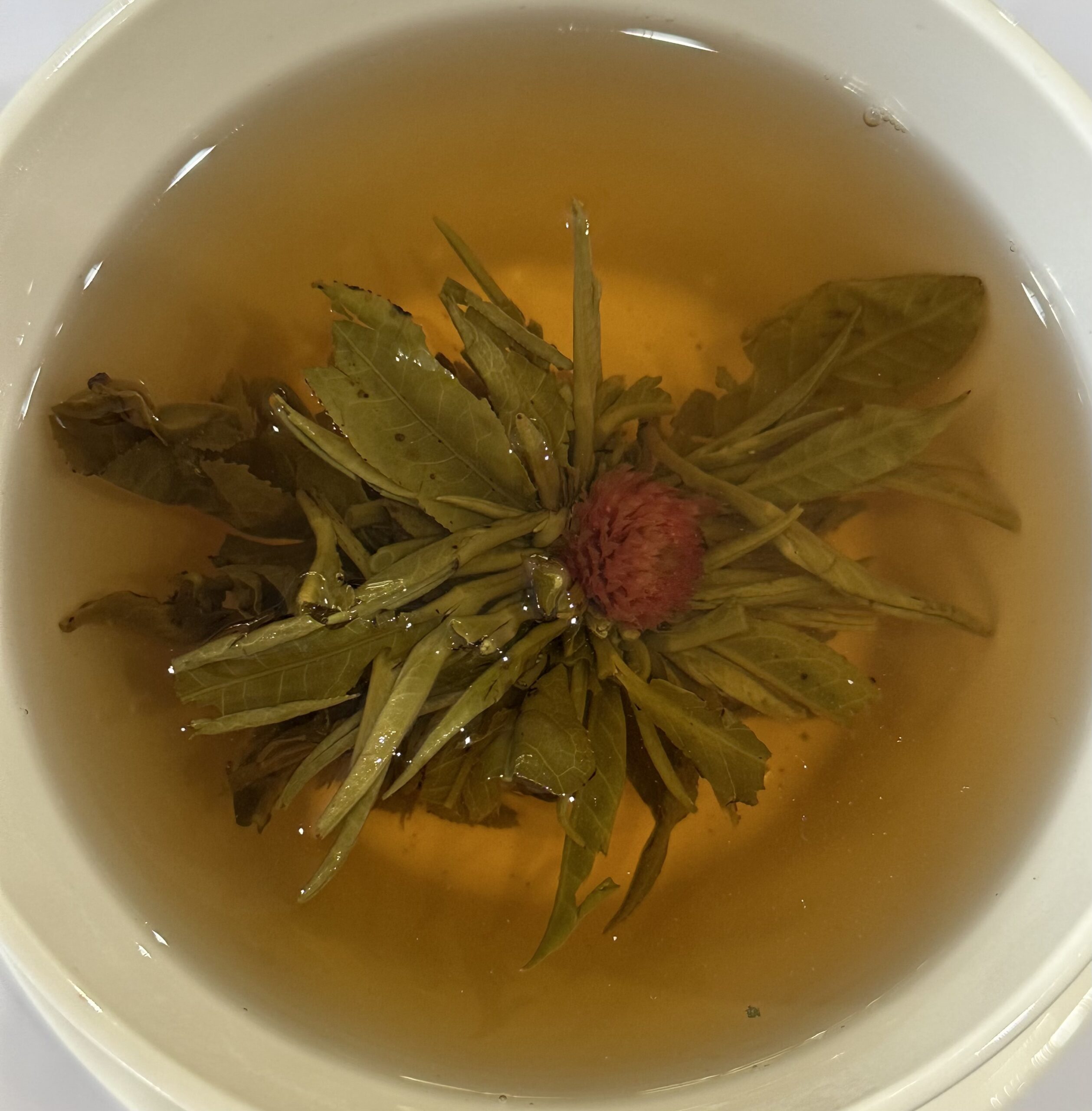 • herbata kwitnąca: Lychee – biała herbata z posmakiem malinowym z różowym kwiatkiem