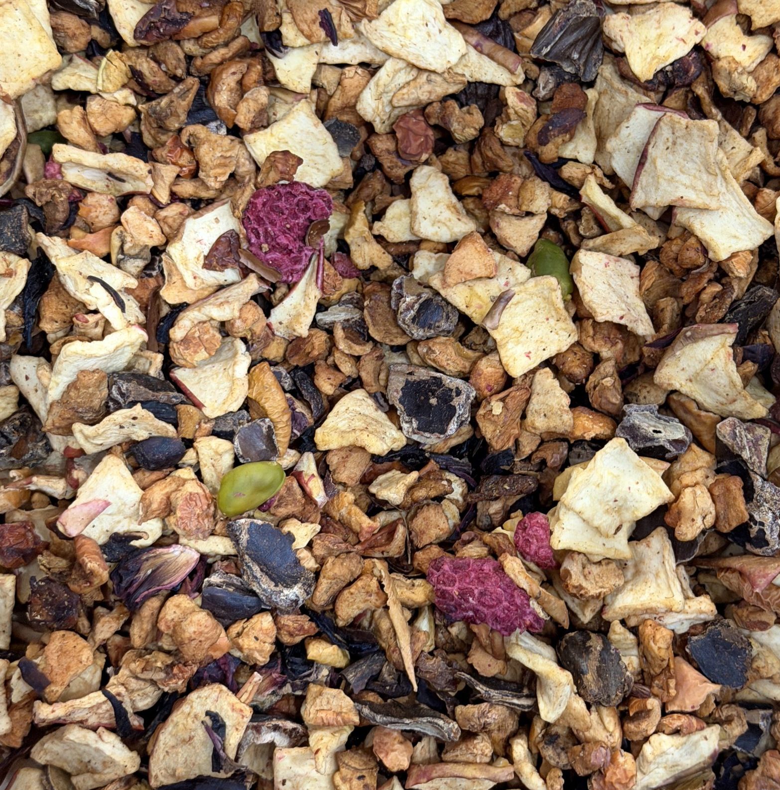 | Składniki | Chleb Świętojański – nasiona, Hibiskus, Jabłko, Kakaowiec, Malina, Pistacje |