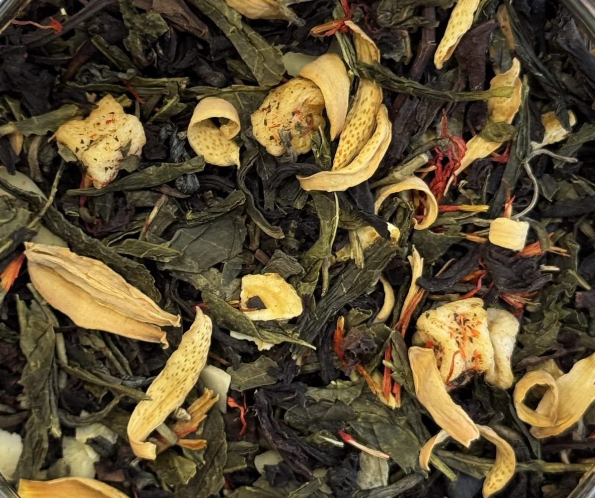 Herbata czarna, Herbata zielona, Jabłko, Krokosz, Migdał, Pomarańcza, Pomarańcza – kwiat