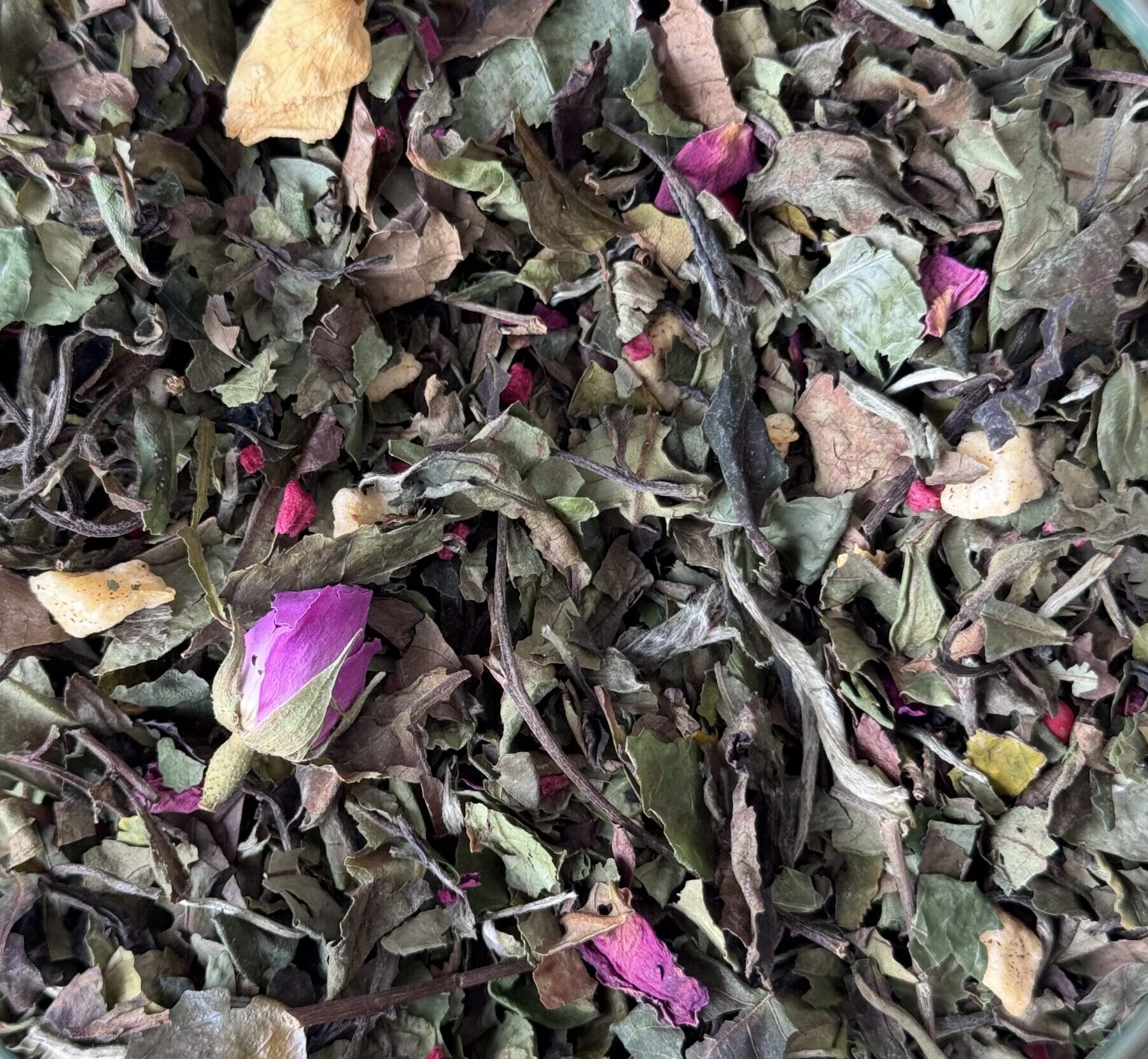 Herbata biała, Jabłko, Malina, Pieprz różowy, Róża, Róża – pączki, Róża – płatki